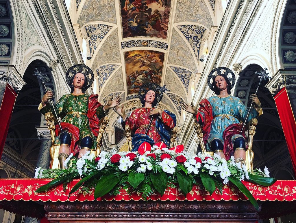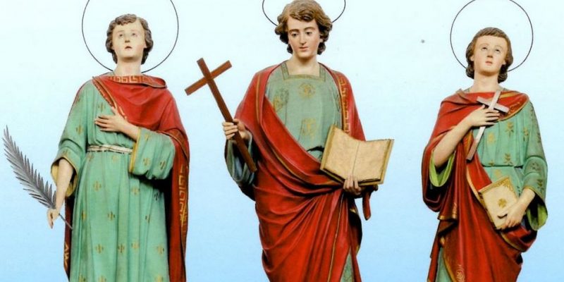 I tre fratelli nacquero a Vaste, in provincia di Lecce. Il padre Vitale apparteneva a una famiglia patrizia, mentre la madre Benedetta era una devota cristiana. L’imperatore Decio, intorno alla metà del III secolo, emanò un editto secondo cui ogni persona aveva l’obbligo di effettuare un sacrificio alle divinità della religione romana; un eventuale rifiuto prevedeva la condanna a morte. Un plotone di soldati romani si presentò a Vaste, nella casa patrizia di Vitale e Benedetta, con l’ordine di mettere in catene i loro tre giovani figli, rei di avere eluso la legge con la continua testimonianza di quella fede che hanno assimilato in famiglia, ovvero il cristianesimo.
