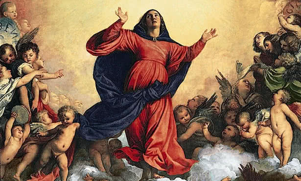 Si parla dell’Assunzione della Vergine probabilmente in ricordo della dedicazione di un’antica chiesa mariana a Gerusalemme e completa la devozione intorno alla Madonna, da Immacolata concezione a Madre ma Vergine, fino a che Ella torna nei cieli, nel posto accanto a Cristo cui era fin dall’inizio predestinata. La solennità dell’Assunzione della Vergine celebra la fine della vita terrena di Maria che viene accolta in cielo con il corpo e l’anima, anticipando la resurrezione della carne che avverrà alla fine dei tempi.