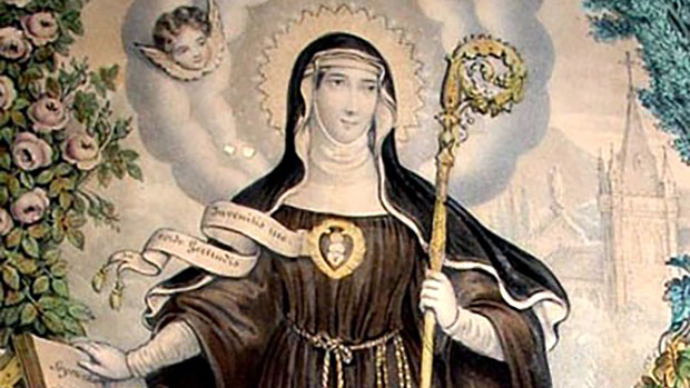 Gertrude (anche conosciuta come Geltrude) nasce nel 1256 a Eisleben, in Germania. A soli cinque viene affidata nel monastero cistercense di Hefta guidato dalla grande Matilde di Magdeburgo. Studia le materie del trivio e del quadrivio, legge, teologia e musica. Presto rivela un’intelligenza fuori dal comune. All’età di 26 anni, avverte la chiamata del Signore, “L’illuminazione” come verrà definita in uno dei suoi scritti, che la spinge alla consacrazione a Dio.