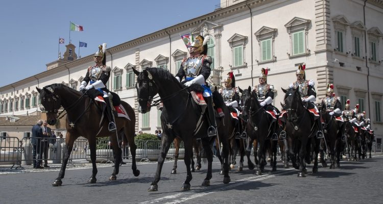 Nel pomeriggio il Capo dello Stato ha assistito al cambio della Guardia d’Onore, in forma solenne, con lo schieramento e lo sfilamento di un Reparto di Corazzieri a cavallo e della Fanfara del IV Reggimento Carabinieri, che si è svolto sulla piazza del Quirinale.