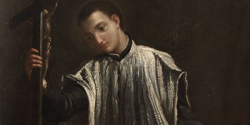 San Luigi di Gonzaga, primogenito di Ferrante Gonzaga e di Marta Tana di Chieri, nacque il 9 marzo 1568 nel castello di famiglia di Castiglione delle Stiviere, nel Mantovano. Primo di otto figli, e quindi erede al titolo di marchese, fin dalla prima infanzia venne educato alla vita militare. Quanto mai precoce all’età di sette anni avvenne ciò che in seguito definì la sua “conversione dal mondo a Dio“: sentendosi chiamato a consacrare la propria vita al Signore intensificò la preghiera, recitando ogni giorno in ginocchio i sette Salmi penitenziali e l’Ufficio della Madonna.