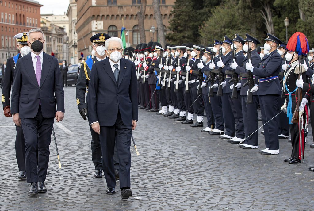 Il presidente Mattarella accompagnato dal ministro della Difesa Lorenzo Guerini