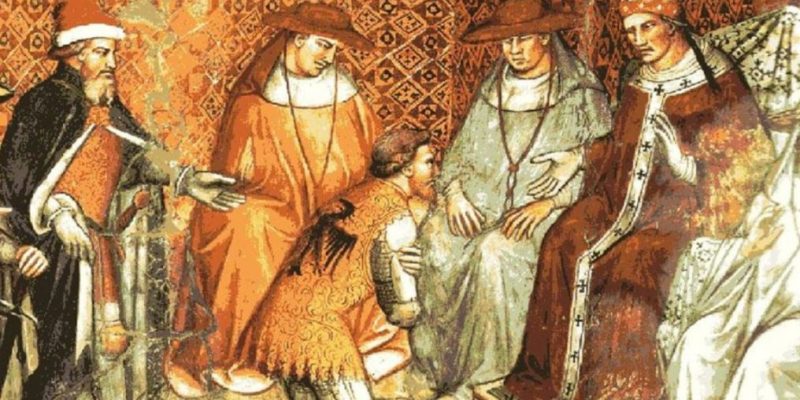 Scomunicato, l’imperatore si presentò a Canossa a piedi nudi, vestito del saio del penitente, per chiedere a Gregorio VII l’assoluzione. Quando però l’ebbe ottenuta e superò le difficoltà da cui in Germania il suo potere imperiale fu stato messo in crisi, si scagliò nuovamente contro Gregorio VII, che assediato a Castel Sant’Angelo venne salvato dai Normanni di Roberto il Guiscardo, i quali lo condussero a Salerno dove morì pronunciando le tanto amare quanto celebri parole “Intensamente amai la giustizia e odia l’iniquità: muoio perciò in esilio”.