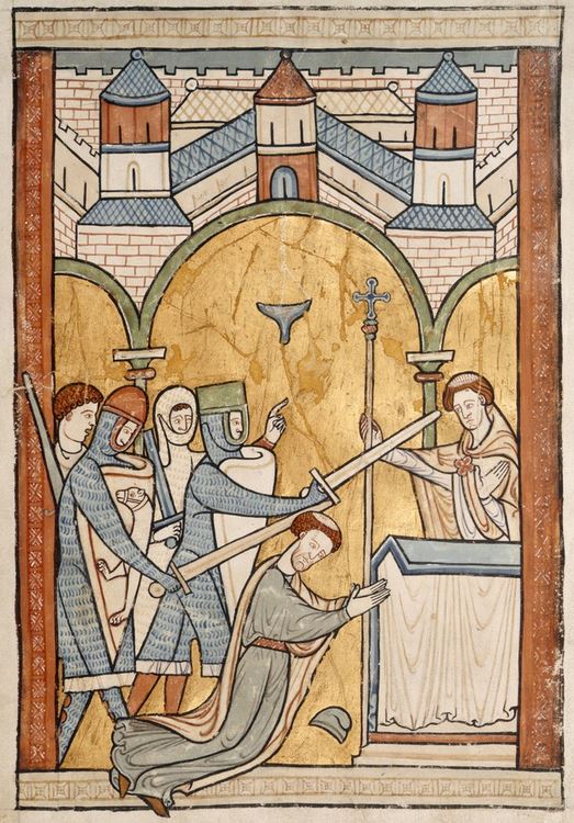 Al rientro in Inghilterra, come primo atto Becket sconfessa i vescovi che sono scesi a patti con il re, il quale, si dice, arriva a esclamare: “Chi mi toglierà di mezzo questo prete intrigante?”. E’ così che quattro cavalieri armati partono alla volta di Canterbury. L’arcivescovo viene avvertito, ma resta al suo posto; accoglie i sicari del re nella cattedrale, vestito dei paramenti sacri e si lascia pugnalare senza opporre resistenza. E’ il 23 dicembre del 1170.