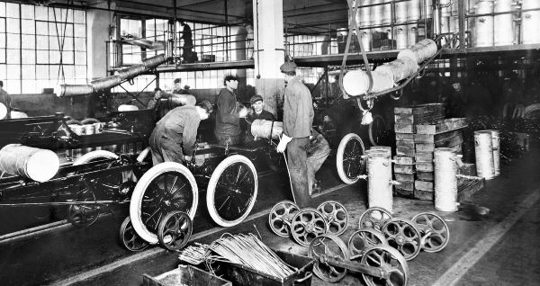 Il suo fondatore si distingue, infatti, per l’introduzione di nuove forme di organizzazione del lavoro. Prime fra tutte la catena di montaggio che prevede la meccanizzazione del lavoro, grazie a un nastro trasportatore che consente di impiegare 93 minuti anziché 12 ore per assemblare un’automobile. Questo consente di realizzare prodotti a basso costo e di poter aumentare la paga degli operai.