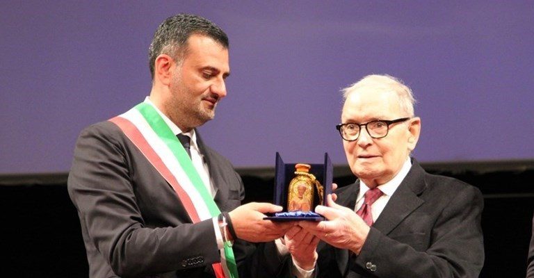 Accanto al maestro Morricone sono saliti sul palco il compositore Nicola Piovani e i registi Giuseppe Tornatore e Gianni Quaranta.Con la voce rotta dalla commozione, il maestro Morricone ha dedicato la consegna delle chiavi alla ricostruzione del Teatro Petruzzelli: è “la prima cosa che mi viene dal cuore”, ha detto.”Voglio ringraziare tutti quelli che hanno parlato per me”,ha aggiunto dopo aver ascoltato la laudatio di Piovani e i saluti del governatore Michele Emiliano e del sindaco di Bari, Antonio Decaro: “Io penso sempre di non meritare niente – ha detto il ‘re’ delle colonne sonore – la musica è l’unica cosa che so fare e la faccio quando posso“.