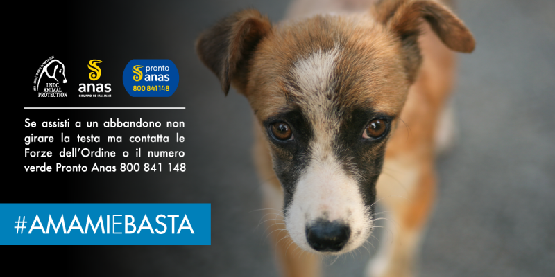 Anas gestisce circa 30 mila chilometri di rete stradale e autostradale di interesse nazionale e i suoi cantonieri salvano ogni giorno moltissimi cani che ancora vengono abbandonati lungo le strade italiane, assicurando la sicurezza loro e degli automobilisti. LNDC Animal Protection e Anas ripropongono quindi la campagna #AMAMIeBASTA per la lotta contro l’abbandono degli animali domestici attraverso la sensibilizzazione sui canali social, sugli organi di informazione e su Isoradio 103,3 FM in vista dell’estate che, come sempre, vedrà un’intensificazione del traffico extraurbano.
