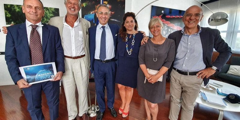 L’incontro con il ministro Sergio Costa è avvenuto il primo agosto: «Oggi abbiamo iniziato a creare le premesse affinché gli hotel italiani possano diventare plastic free, che significa avere cura dell’ambiente e creare un nuovo mercato. L’obiettivo, ambizioso, è di arrivare al total plastic free», ha dichiarato Costa. Al raggiungimento di questo obiettivo contribuirà anche la Fondazione Recchi – dell’esploratore e fotografo Alberto Luca Recchi -, che aveva già sottoscritto in giugno un protocollo con Federalberghi riguardante l’eliminazione della plastica da parte degli alberghi di Roma. In quell’occasione il presidente di Federalberghi Roma, Giuseppe Roscioli, affermava: «Roma parte per prima in Italia, con i suoi alberghi, nel restituire il rispetto che merita all’ambiente». L’associazione albergatori, da parte sua, spiegava in una nota di risentire “in termini di redditività dei danni derivanti dall’insufficiente attenzione prestata dalla gestione amministrativa al peso dell’abusivismo ricettivo sul decadimento del tessuto sociale e a un degrado ambientale della città ormai purtroppo conosciuto in tutto il mondo”. Alberto Luca Recchi sulla sua pagina Facebook festeggia con un post: “Ho iniziato questo percorso, perché sentivo di doverlo al mare, ma non credevo sarebbe andato in porto. Invece… Mai rinunciare a un sogno o abbandonare una causa per paura di fallire”.
