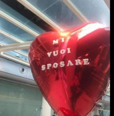 Lo scenario è stato l’aeroporto di Catania, dove l’innamorato si è presentato non solo con i fiori e un prezioso dono, ma con tanto di enorme pallone volante rosso, a forma di cuore con una esplicita proposta: “Mi vuoi sposare”