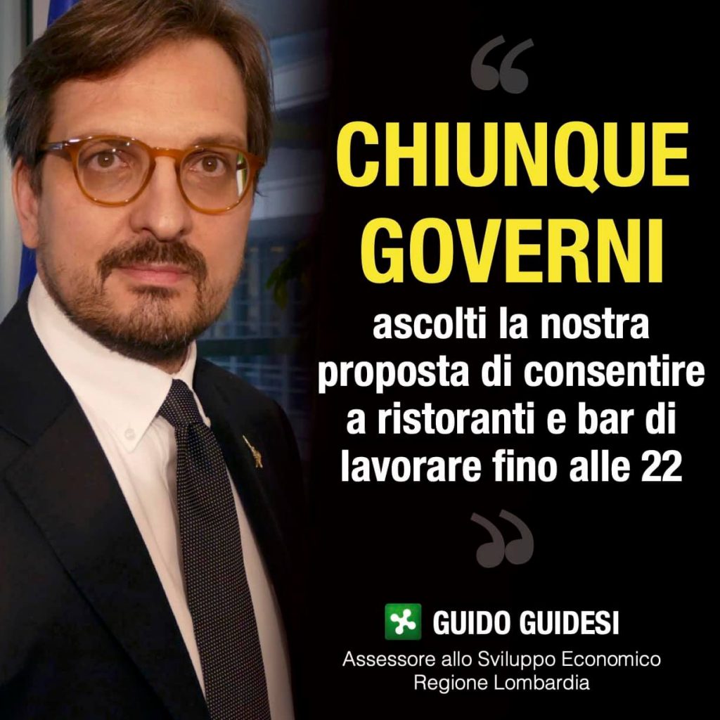 In queste ore, come riporta l’Ansa, ma lo stesso Guidesi ne parla sul suo profilo Facebook lui ed il governatore Attilio Fontana hanno deciso di inviare una lettera formale al Governo in cui richiedono espressamente che i ristoranti e le attività assimilabili possano svolgere la loro attività fino alle ore 22 e dunque venga concessa loro un’ estensione dell’orario che ora prevede la chiusura dei locali alle 18.