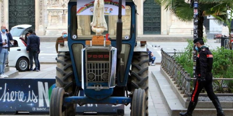 MILANO. A qualcuno sicuramente saranno venute in mente le sequenze comiche del film di Renato Pozzetto “Il ragazzo di campagna”. Ma questa volta si è trattato di un gesto di Fede, di amore e speranza. Speranza di una intercessione da parte della Madonna, la Madonnina in questo caso, per sconfiggere il covid-19 che sta flagellando il mondo e l’Italia. I fatti. Un agricoltore è arrivato col suo trattore in Piazza del Duomo per pregare e chiedere la grazia per il virus.