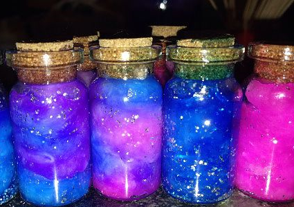 Volendo alcuni uniscono anche qualche goccia di colorante alimentare prima di chiudere il barattolo, mentre altri aggiungono della colla gel trasparente o della colla glitterata per rendere più lento il movimento dei brillantini.