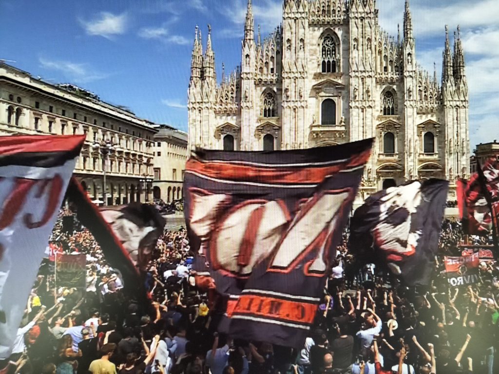 Quindi tra due ali di folla la bara è uscita sul piazzale mente un volo di palloncini azzurri si liberava nel cielo milanese e la folla tributava l’ultimo saluto, con un fragoroso quanto caloroso applauso all’ ex-premier, con i tifosi del Milan che intonavano l’inno tanto caro al loro presidente, in un tripudio e sventolio di bandiere rossonere.