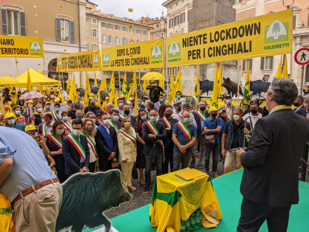 Sono migliaia gli agricoltori, allevatori e pastori scesi in Piazza Montecitorio davanti al Parlamento e in tutti i capoluoghi di provincia per protestare contro l’invasione dei cinghiali, pericoloso fenomeno in crescita in tutto il Paese. I manifestanti chiedono che il governo si attivi per fermare quella che è stata definita una “calamità” capace di distruggere raccolti, aggredire gli animali, assediare le stalle e causare incidenti stradali nelle campagne ma anche all’interno dei centri urbani con pericoli concreti per gli agricoltori ed i cittadini. A Roma è presente il presidente nazionale della Coldiretti Ettore Prandini e in giornata sono attesi rappresentanti delle Istituzioni e della politica.