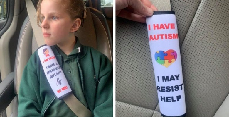 A tal proposito, una mamma australiana ha avuto una meravigliosa idea che, nel giro di pochissimo tempo, è diventata subito virale sul web. Si chiama Natalie Bell e ha ideato dei copri cintura di sicurezza personalizzati per bambini con problemi di salute o con disabilità in modo da informare i medici, i soccorritori o qualunque operatore di emergenza dello stato di salute di questi bambini in caso di incidente d’auto.
