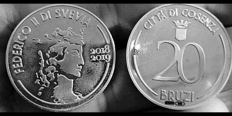 Sul retro, invece, campeggia l’effigie di Federico II di Svevia e il corso di validità. E’ il Bruzio, il nuovo strumento di pagamento coniato dal Comune di Cosenza a sostegno delle famiglie economicamente svantaggiate e che sostituisce i tradizionali sussidi economici (buoni spesa) con i quali l’Amministrazione comunale, nel corso dell’anno e, in particolare nel periodo delle festività natalizie, va incontro alle esigenze dei non abbienti e bisognosi, residenti in città.