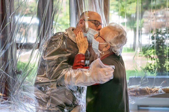 Nella casa di riposo di Castelfranco Veneto (TV) è stata allestita una “stanza degli abbracci” in cui ospiti e parenti possono abbracciarsi, pur restando separati, tramite un telo di plastica