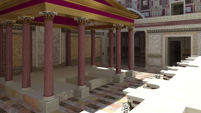 ROMA. La Domus Transitoria, la prima grande reggia che Nerone si fece costruire sul Palatino, riapre oggi al pubblico, dopo dieci anni di restauri. Marmi intarsiati di meravigliose cromie, pareti e volte affrescate e decorate con oro e gemme blu lapislazzulo, un soffitto a cassettoni con un telaio virtuale di travi rosse dove sono inquadrate le scene di eroi dell’epos omerico, sottolineano lo sfarzo della dimora, che fu dismessa e interrata dopo l’incendio del ’64 d.C. per ordine dello stesso imperatore, il quale decise di sostituirla con la Domus Aurea, più ricca e grande. «Ma in questi ambienti c’è in nuce già tutto, quasi una prova tecnica in piccolo di quello che sarà poi la Domus Aurea», spiega la direttrice del Parco archeologico del Colosseo Alfonsina Russo. Sono stati recuperati 800 metri quadrati per i visitatori, che saranno accompagnati nel percorso da una speciale illuminazione, oltre a proiezioni e visori 3d.