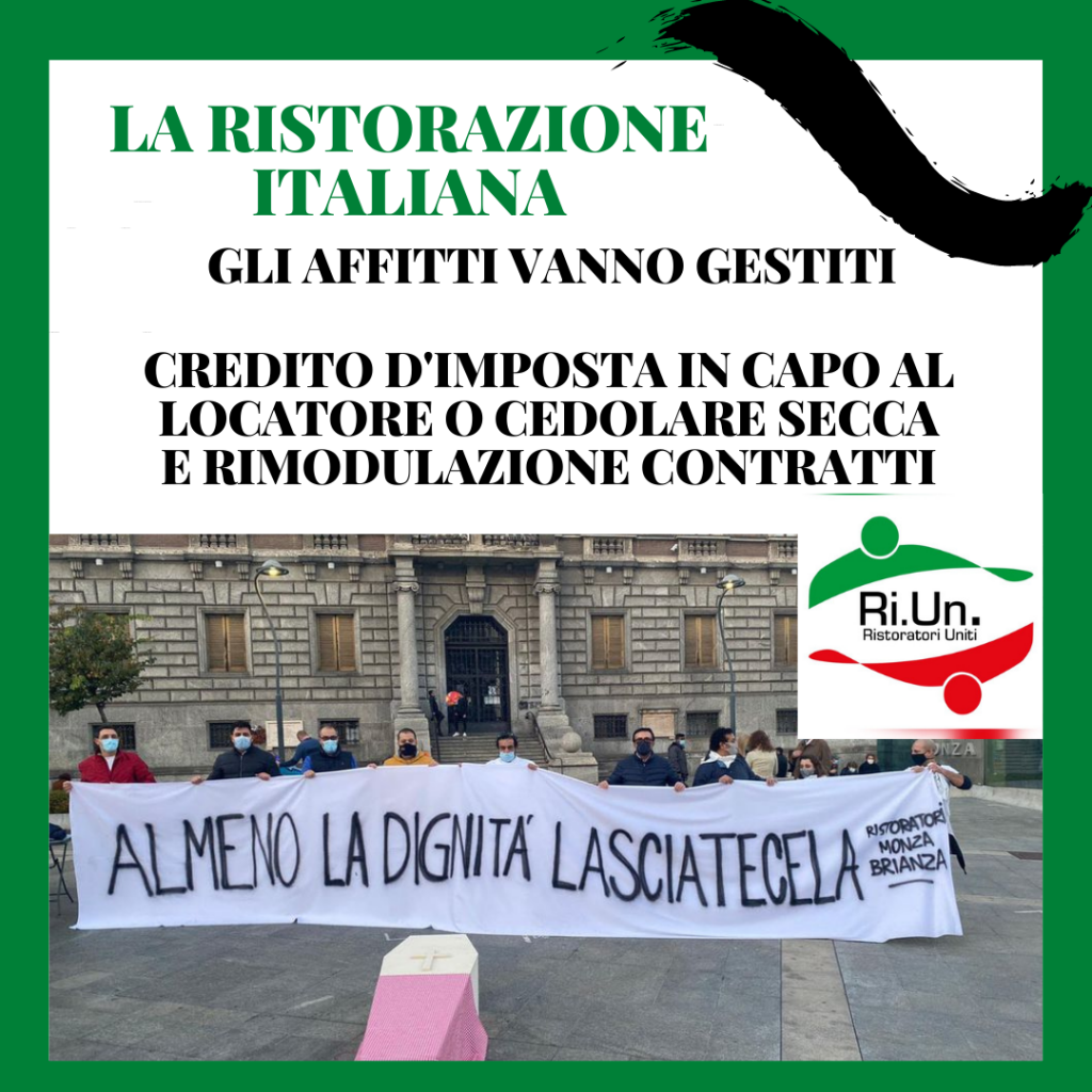 Riceviamo da Vincenzo Butticè, Portavoce Fiepet Regione Lombardia e Presidente RI.UN, questo importante Comunicato in cui i ristoratori chiedono al Governo di affrontare non solo la questione ristori, ma e soprattutto la questione affitti, cedolare secca e del credito d’imposta, tematiche troppo importanti in questo momento di crisi del settore. Il comunicato e gli intenti della categoria per riemergere dal ‘baratro’ in cui il Covid 19 ha gettato i ristoratori italiani. Nei giorni scorsi avevamo già avuto modo di presentarvi Butticè grazie ad un’ intervista in esclusiva in cui ci spiegava le ragioni dei no all’iniziativa IOAPRO. Ecco il contenuto del comunicato: