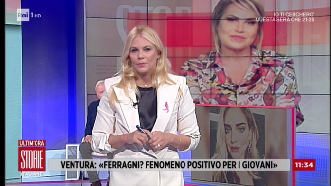 La conduttrice ha poi appoggiato pubblicamente l’esposto presentato dal Codacons alla Procura della Repubblica e al Ministro dei beni culturali Dario Franceschini per la discussa immagine pubblicata da Vanity Fair che mostrava Chiara Ferragni nelle vesti di una Madonna rinascimentale: «Poi il Codacons ha fatto una denuncia per quell’immagine in cui è apparsa vestita da Madonna. Non voglio entrare nel merito ma ho grandissima stima dell’associazione dei consumatori».