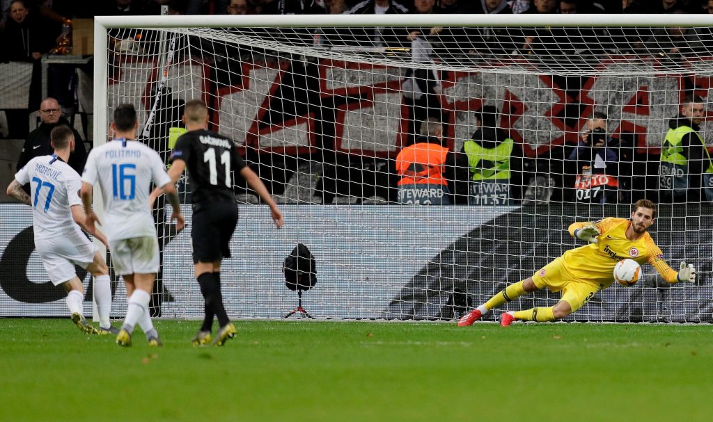 Nel pomeriggio a dare inizio alle danze è stata l’Inter, priva del solito Icardi, che alla vigilia ha scoperto di dover fare a meno anche di Nainggolan, che va ad aggiungersi alla sfilza di infortunati (sei per la precisione più Maurito, che non si capisce se lo sia veramente e si tratti di una notizia data a giustificazione di ben altri problemi). I nerazzurri hanno sfidato alla Commerzbank-Arena l’Eintracht Francoforte. Mister Spalletti decide di schierare la formazione tipo delle ultime partite con l’unica novità rappresentata da Borja Valero trequartista al posto del centrocampista belga infortunato. Al 22′, a causa di un atterramento in area di Martinez, i nerazzurri beneficiano di un calcio di rigore. Si incarica di tirarlo Brozovic, ma un ottimo Kevin Trapp intuisce e para il tiro dagli undici metri. Vogliamo ricordare che il portierone tedesco quest’anno è in prestito, senza alcuna opzione di riscatto, dal Paris Saint Germain, tornato in patria per far spazio all’arrivo di Buffon a Parigi. Dopo l’occasione fallita i meneghini creano poco, addirittura nel secondo tempo subiscono una grande pressione da parte dei tedeschi, che grazie alle parate di Handanovic e al gol annullato a N’Dika, per un tocco precedente di Haller in evidente fuorigioco, porta ad un buon pareggio in trasferta a reti inviolate che rimanda il discorso qualificazione alla prossima settimana. Naturalmente l’Inter avrà il vantaggio di giocarsi il passaggio davanti al pubblico di San Siro.
