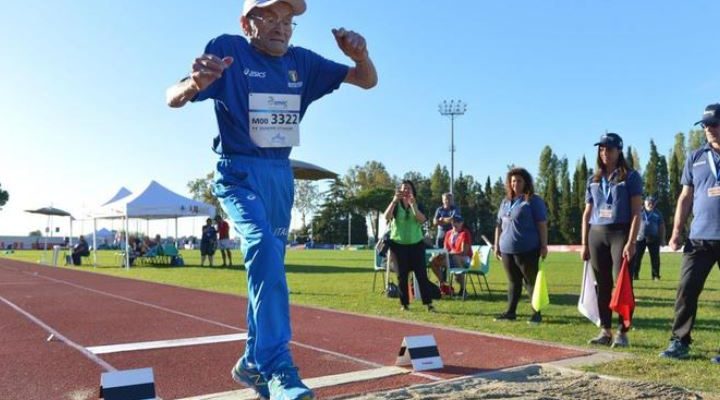 VENEZIA. Giuseppe Ottaviani ha 103 anni e venerdì si è presentato ai Campionati europei master di Jesolo per gareggiare nel salto in lungo. Una sfida “epica” seguita dal pubblico tra applausi e attimi di silenzio. Dopo tre nulli sono arrivati i due salti validi: il primo da 64 centimetri, quindi uno a 65. Alla fine ha vinto facile – era l’unico in gara nella categoria M100 – ma questo non toglie nulla all’eccezionale prova di sport e di vita dimostrata da Giuseppe che ha cominciato con l’agonismo soltanto superati i settant’anni, per sfuggire alla noia della pensione.