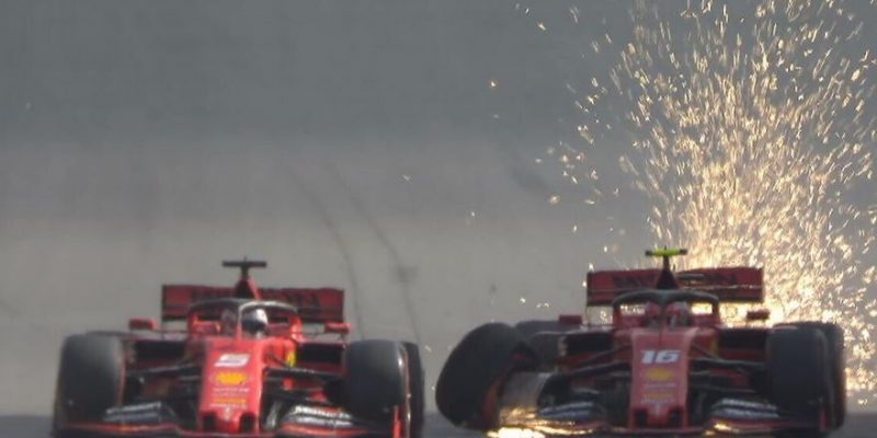 Pasticcio tra Sebastian Vettel e Charles Leclerc nel finale che costringe entrambi al ritiro. Il pilota monegasco si tocca con il suo compagno durante un controsorpasso per la quarta posizione, bucando la gomma anteriore destra. Danni anche alla posteriore destra di Vettel che come il compagno si deve fermare. ”E’ una situazione da analizzare, siamo tutti e due dispiaciuti per il team, lui ha provato ad andare verso l’interno. L’episodio non condiziona il nostro rapporto, siamo abbastanza maturi”, spiega Charles Leclerc. Sono molto dispiaciuto, ma sono sicuro che i rapporti con Seb resteranno invariati”.