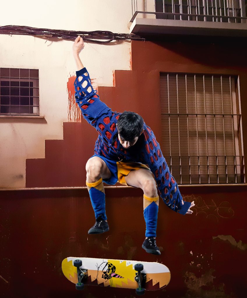 La collezione streetwear è caratterizzata da tessuti forti e flessibili, adatti a essere indossati tutto l’anno. Tutti i colori utilizzati sono caratteristici e simbolici del posto, ed è possibile ammirarli in tutta Siviglia. Il taglio della linea è unisex e a taglia unica, in modo da adattarsi perfettamente a ogni fisicità. Altra caratteristica unica sono i riferimenti alle mattonelle e alle decorazioni delle strade cittadine, che creano una connessione con la vera moda da skater.