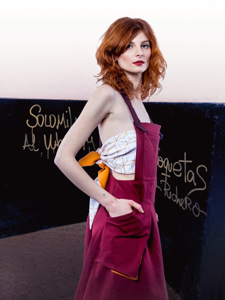 “Trashroots” è ispirata alle radici andaluse della stilista, che affianca tecniche di artigianato tradizionale a uno spirito moderno, contemporaneo, e a un’ambientazione urbana. È caratterizzata da tessuti forti e flessibili, adatti a essere indossati tutto l’anno. Tutti i colori utilizzati sono caratteristici e simbolici del sud della Spagna, ed è possibile ammirarli in tutta Siviglia.
