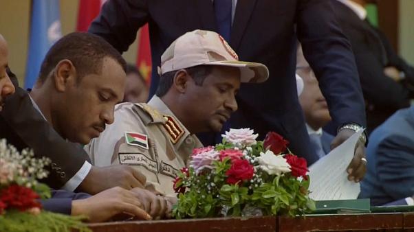 KHARTUM. La Giunta militare e l’opposizione in Sudan hanno firmato la dichiarazione costituzionale, finalizzando un accordo storico che apre la strada al trasferimento dei poteri ai civili dopo mesi di proteste popolari. Il generale Mohamed Hamdan Daglo, vice del presidente in carica Abdel Fattah el-Borhan ma di fatto uomo forte della giunta militare, ha firmato alla presenza di capi di stato e di governo stranieri tra cui il premier etiope Abiy Ahmed e il presidente sud-sudanese Salva Kiir, una Dichiarazione costituzionale con il rappresentante delle Forze per la libertà e il cambiamento, Ahmed al-Rabie. Presente anche il rappresentante di uno dei gruppi promotori delle proteste, il leader dell’Associazione dei professionisti sudanesi Mohammad Naji al-Assam, il quale ha dichiarato che “il sogno si è realizzato” e che “I sacrifici dei martiri della rivoluzione hanno spianato la strada alla celebrazione di oggi.