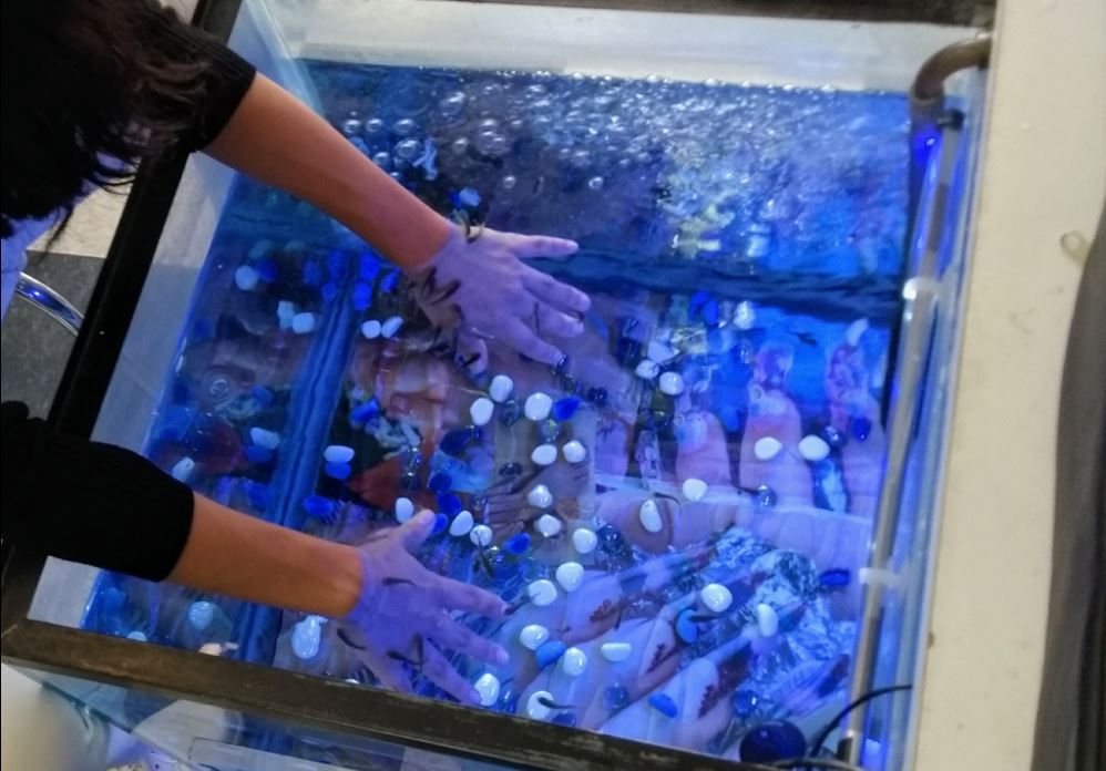 La Fish pedicure, o fish therapy, è un trattamento di origini orientali che sfrutta l’azione dei pesci Garra Rufa per una pedicure. Durante questa pratica i piedi vengono immersi in una vasca d’acqua ed i pesci, grazie alla loro bocca a ventosa, si nutrono delle cellule morte della pelle.