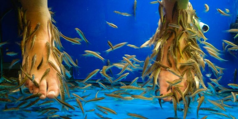 Negli ultimi anni si è diffusa anche in Italia la moda della Fish Pedicure, conosciuta anche come Fish Therapy. Viene definita come un trattamento esfoliante per i piedi, talvolta utilizzata anche per le mani, che viene fatto dai pesci in appositi vasche. Questo tipo di pedicure consiste nell’immergere i piedi in una vasca piena d’acqua con i pesci per circa 20-30 minuti, lasso di tempo in cui questi ultimi mangeranno lo strato più superficiale della pelle del piede (cuticole, calli, duroni).