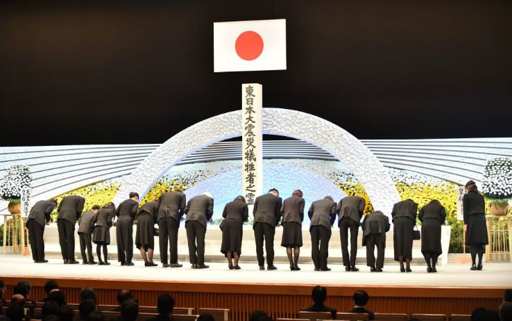 Alle 14:46 in punto, un minuto di silenzio è stato osservato al Teatro nazionale di Tokyo, l’esatto orario in cui il terremoto si è verificato l’11 marzo 2011, così come lungo i litorali della costa del Tohoku, nel Giappone nord orientale, devastate dall’onda anomala.