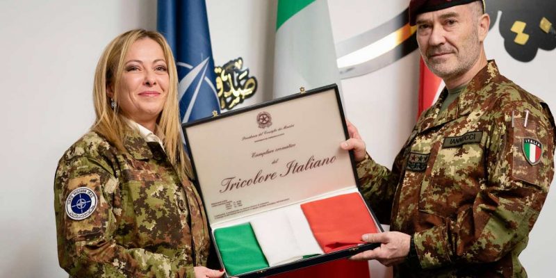 Il seguito la leader di FdI ha incontrato l’ambasciatore italiano Maurizio Greganti e poi si è recata alla base militare Union 3, sede dei Comandi della Missione Nato (NMI) e della Coalizione anti-Daesh (OIR), dove è stata accolta dal comandante della missione, il generale di Corpo d’Armata Giovanni Maria Iannucci, e dal personale del contingente militare italiano. I militari presenti nella base appartengono militari al I Reggimento “Tuscania” e al XIII Reggimento “Friuli Venezia Giulia” dell’Arma dei Carabinieri.