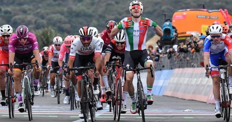 ORBETELLO. La volata di Elia Viviani, che si era imposto sul traguardo di Orbetello, è stata giudicata scorretta per cambio di direzione. La giuria del 102° Giro d’Italia, dopo avere analizzato la volata della terza tappa (Vinci-Orbetello), ha declassato il campione italiano in carica.