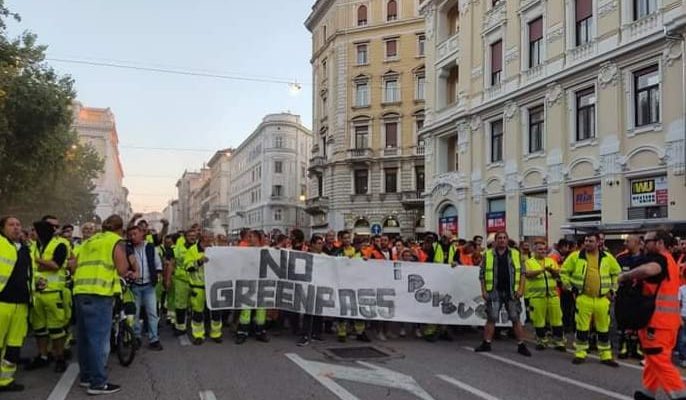 Tra le proteste più calde, e maggiormente attenzionate, c’è quella dei portuali di Trieste, dove si registra il maggior numero di persone non immunizzate: su 950 lavoratori il 40% è senza Green pass. I leader di questa categoria hanno rifiutato ogni tentativo di mediazione da parte delle istituzioni e hanno rifiutato la raccomandazione del Viminale che sollecitava le aziende a mettere a disposizione tamponi gratuiti al personale. Ad alimentare il fuoco delle polemiche Federlogistica, che definisce la proprosta dei tamponi “un errore clamoroso”.
