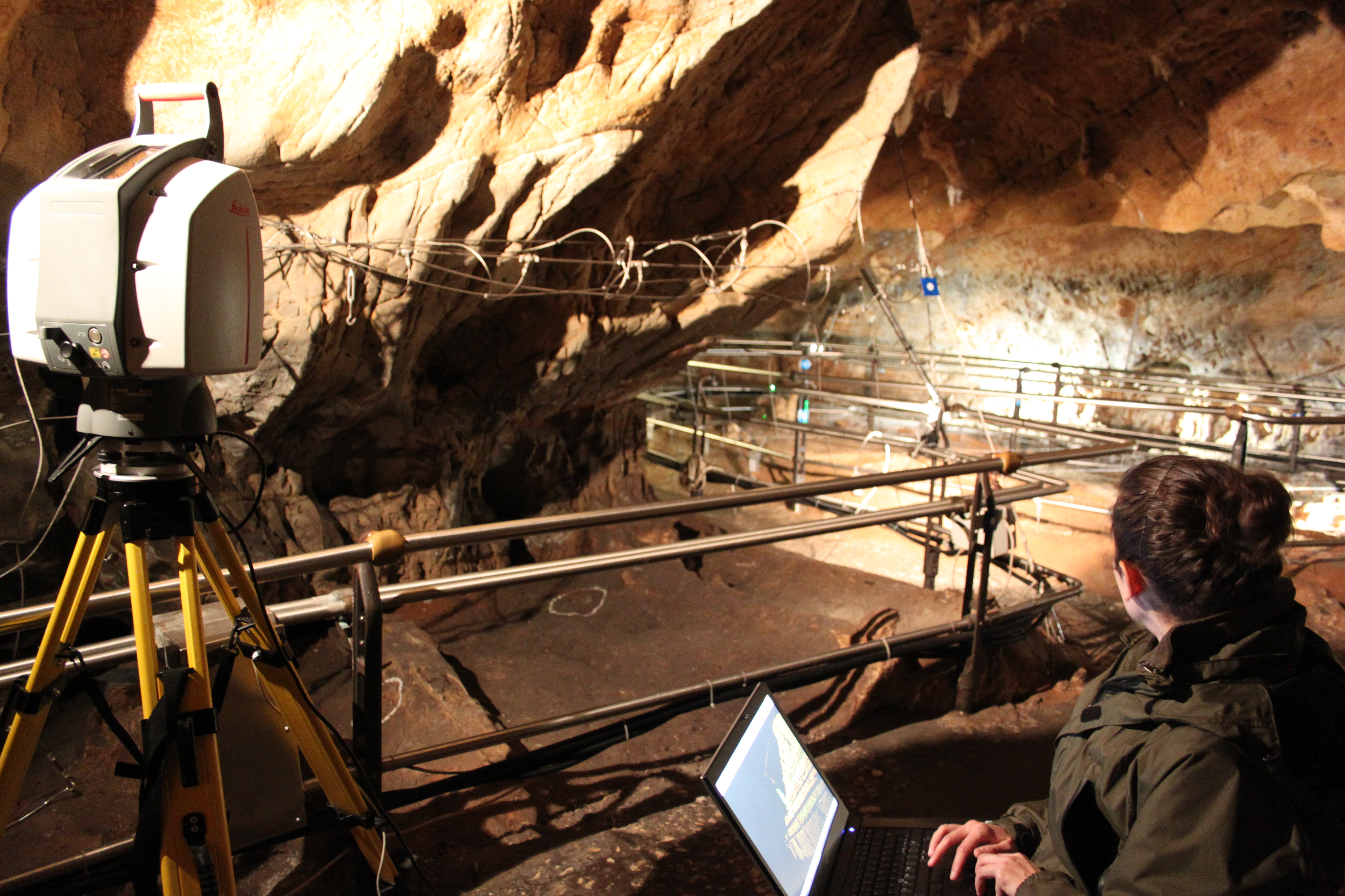 Rilievo fotogrammetrico della superficie sulla quale sono impresse le impronte nel cunicolo inferiore del “Corridoio delle impronte” (foto Isabella Salvador)