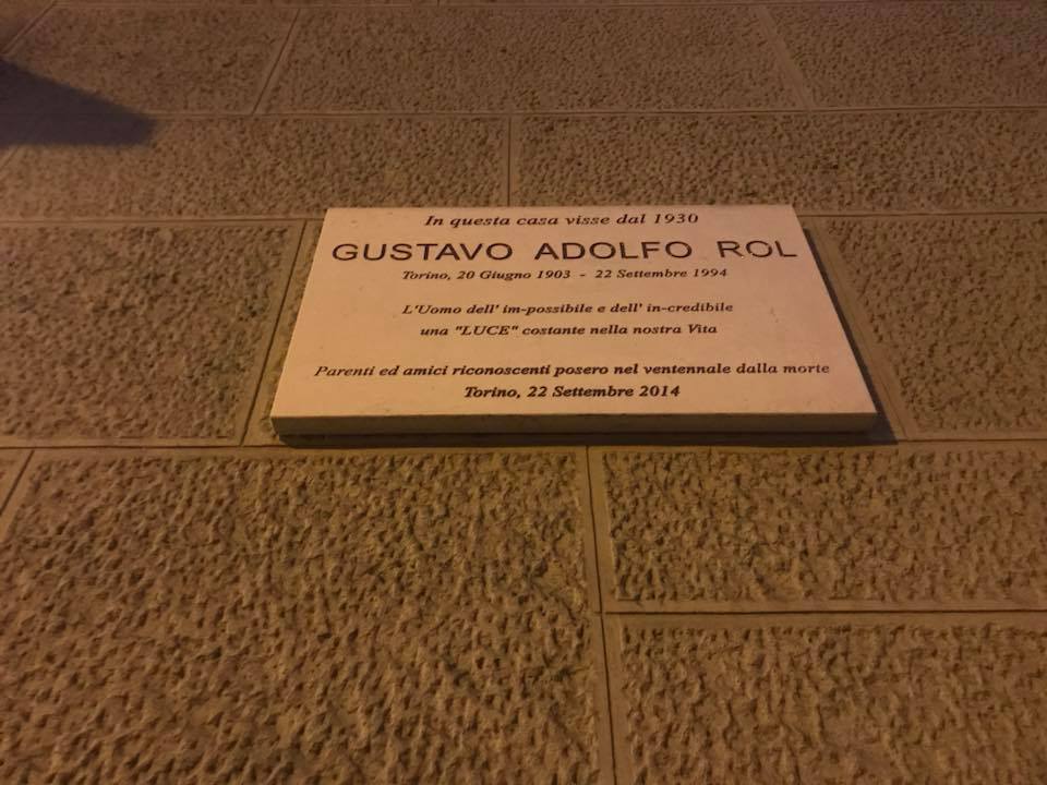 In via Silvio Pellico a Torino, sulla facciata di un palazzo che fa angolo con corso Massimo d’Azeglio, è stata affissa una targa che recita: “In questa casa visse dal 1930 Gustavo Adolfo Rol – L’uomo dell’impossibile e dell’incredibile una luce costante nella nostra vita”. L’effige commemorativa è stata posata il 22 settembre 2014, da parenti ed amici, per celebrare il ventennale della morte di Rol.