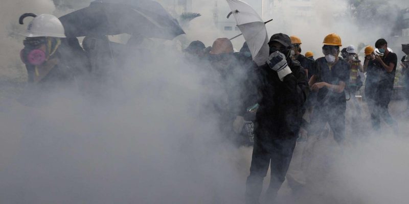 Confinati dalla polizia in un parco nel distretto commerciale, il Chater Garden, i manifestanti hanno sfidato di nuovo il divieto e hanno preso d’assalto le strade: sabato a Yuen Long, domenica a Sai Wan e a Causeway Bay, dirigendosi in due direzioni opposte e bloccando le due principali strade di accesso al centro. A Sogo sono state erette alte barricate, mentre un terzo troncone si è diretto l’ufficio di rappresentanza di Pechino. La polizia ha sparato proiettili di gomma e di gommapiuma ai dimostranti che si avvicinavano al Liaison Office che, dopo l’attacco della scorsa settimana, duramente condannato da Pechino, è ora circondato da alte barriere e ha l’emblema della Repubblica popolare cinese protetto da una teca in plexiglas.