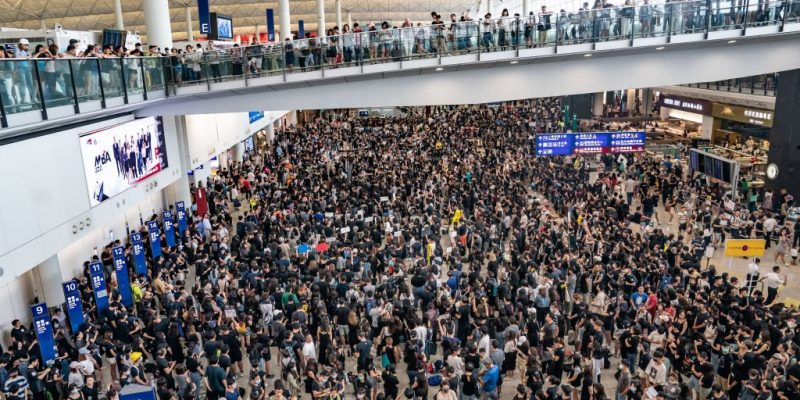 L’autorità aeroportuale di Hong Kong ha cancellato tutti i voli in partenza e in arrivo, a seguito dell’ingresso nel terminal di migliaia di manifestanti. La marea di persone si è riversata all’interno dello scalo internazionale con cartelli che affermavano “Hong Kong non è sicura” oppure “Polizia vergogna“.