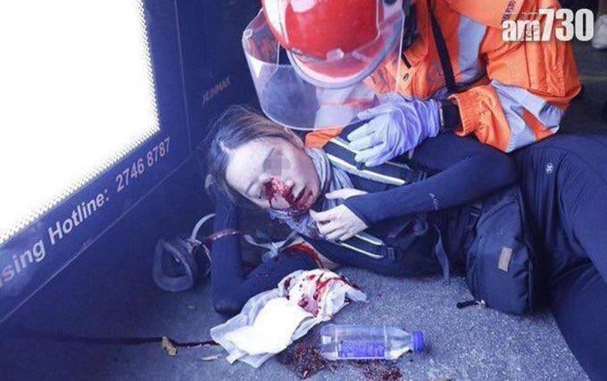 La ragazza ferita all’occhio da un proiettile a cuscinetto (Twitter Steve Chao)