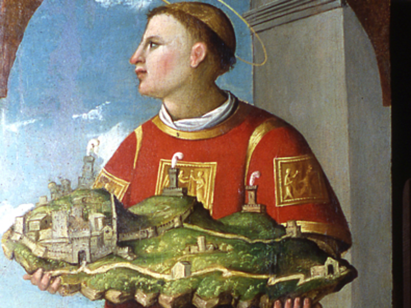 Egli giunse a Rimini nel 257 d.C. dove lavorò fino a quando, per sfuggire alle persecuzioni contro i cristiani ad opera dell’Imperatore Diocleziano, dovette fuggire. Si rifugiò sul Monte Titano. Personalità carismatica e taumaturgo, sul monte Marino riuscì a coagulare intorno a sè una piccola comunità di cui divenne il punto di riferimento. Il Monte Titano gli fu donato dalla proprietaria, Donna Felicita (o Felicissima)per ringraziarlo di aver guarito il figlio malato. C’era il territorio, c’era la popolazione. Il senso di coesione e indipendenza fu trasfuso alla comunità da Marino. Si narra che le sue ultime parole prima di morire fossero: “Relinquo vos liberos ab utroque homine”. Era il 301 d.C. e il seme dell’indipendenza era stato gettato. Poichè il terreno era fertile, germogliò. La prima testimonianza di indipendenza di San Marino. Al di là della leggenda, è certo che il Monte Titano con le sue pendici fu abitato fin dai dai tempi preistorici. Lo testimoniano i numerosi reperti custoditi nel Museo di Stato trovati in varie campagne di scavo. Si consiglia la visione delle pagine dedicate ai ritrovamenti archeologici .