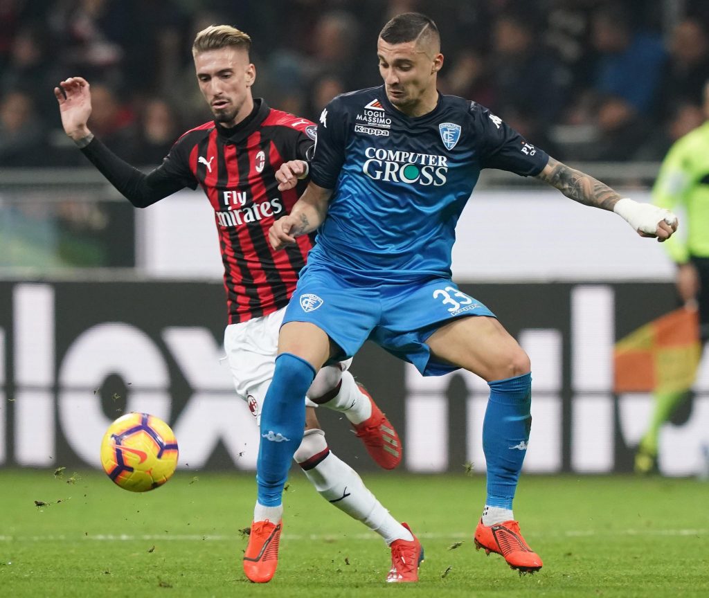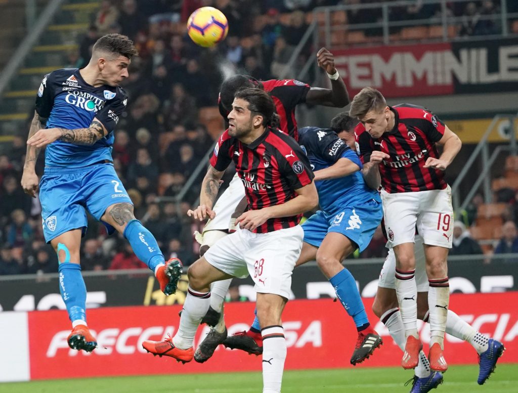 Il primo match di giornata si gioca a San Siro, stadio costretto agli straordinari visto che nel giro di due giorni hanno giocato entrambe le squadre meneghine. Gli allenatori schierano i classici moduli di gioco che hanno caratterizzato le squadre da inizio campionato: i rossoneri si schierano con il classico 3-4-3 e vede l’ingresso dal primo minuto di due importanti novità: il primo è rappresentato da Conti che rientra in campo da titolare dopo la sequela di infortuni che ha costellato una stagione e mezzo nelle file rossonere, il secondo da Castillejo posizionato come esterno d’attacco al posto dello squalificato Suso. L’Empoli oppone un 3-5-2 che spesso si trasforma in un 5-3-2, grazie al grande lavoro di ripiegamento dei due esterni, e vede schierato Farias a fianco del capocannoniere empolese Caputo.