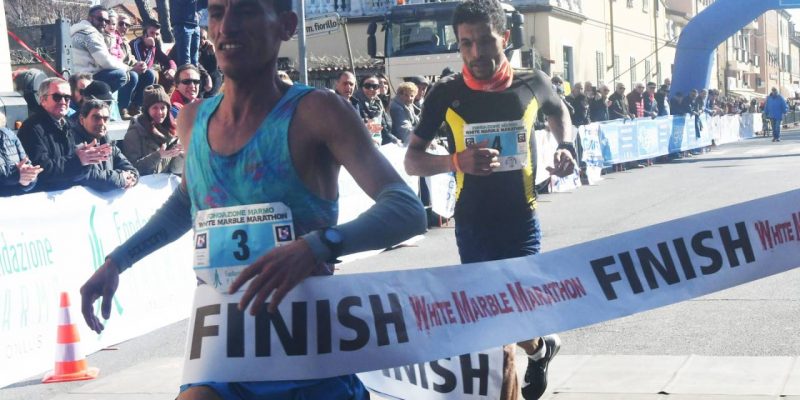 CARRARA. Il marocchino Youssef Aich, portacolori del team “Mandragone in corsa”, di Caserta si è aggiudicato in volata la terza edizione della White Marble Marathon di Carrara, in Toscana, che si è disputata stamani sulla riviera apuana con arrivo e partenza a Marina di Carrara e che ha toccato Marina di Massa, Massa e Cinquale. Ha coperto la distanza di 42,195 km in due ore 24 minuti e 35 secondi. Al secondo posto, distanziato di un solo secondo, l’italo marocchino Ahmed Nasef, 44 anni, dell’Atletica Desio (Monza e Brianza), terzo Matteo Lometti (Unione Giovane Biella, tempo 2:38:59), quarto Carlo Sadar (Corro ergo sum runners, Gessate, Milano, tempo 2:45:19), quinto Marco Lombardo (Atletica Libertas Runners Livorno, tempo 2:50:36).