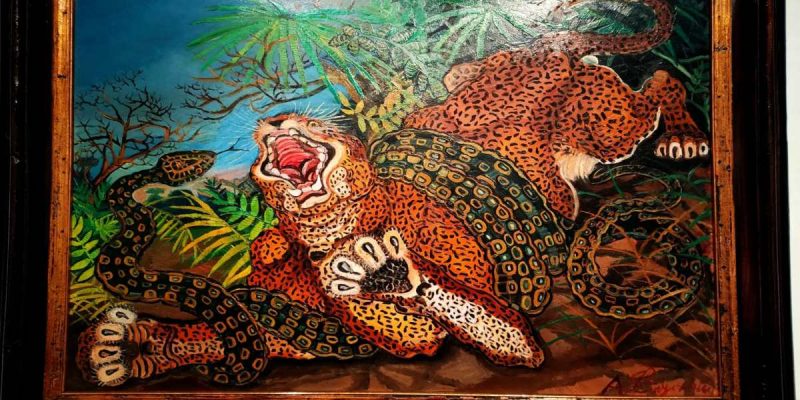 La mostra presenta 90 opere del pittore, tra cui veri e propri capolavori come “Caccia grossa”, “Tigre reale” e “Leopardo con serpente”. La natura diventa protagonista delle tele così come è stata protagonista nella sua vita, che per tanto tempo ha trascorso isolato dal mondo umano. All’interno di questa solitudine Ligabue osservava gli animali rimanendo affascinato dalla loro primordialità, e l’ha espressa tutta a tinte vive sulla tela.