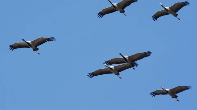 Il passaggio di centinaia di gru sull’Abruzzo, una tradizione consolidata