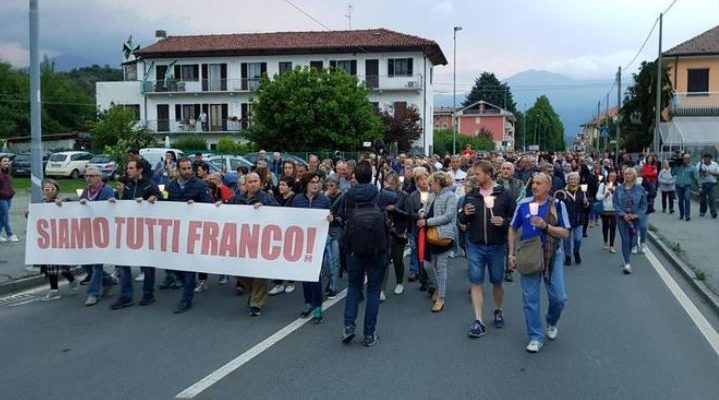 IVREA. Un migliaio di persone hanno preso parte nelle serata per le strade di Pavone Canavese, a pochi chilometri da Ivrea, in segno di solidarietà nei confronti di Franco Iachi Bonvin, il tabaccaio che l’altra notte a Pavone ha sparato a un ladro, uccidendolo, che tentava il furto nella sua ricevitoria. “Siamo tutti Franco”, si legge sullo striscione che apre la manifestazione, organizzata dai commercianti della zona, che in questi giorni hanno espresso vicinanza al tabaccaio e alla sua famiglia. Alla fiaccolata partecipano anche il sindaco di centrodestra di Ivrea, Stefano Sertoli, e alcuni consiglieri regionali neo eletti della Lega. Da Chivasso è arrivato un pullman con una trentina di persone.