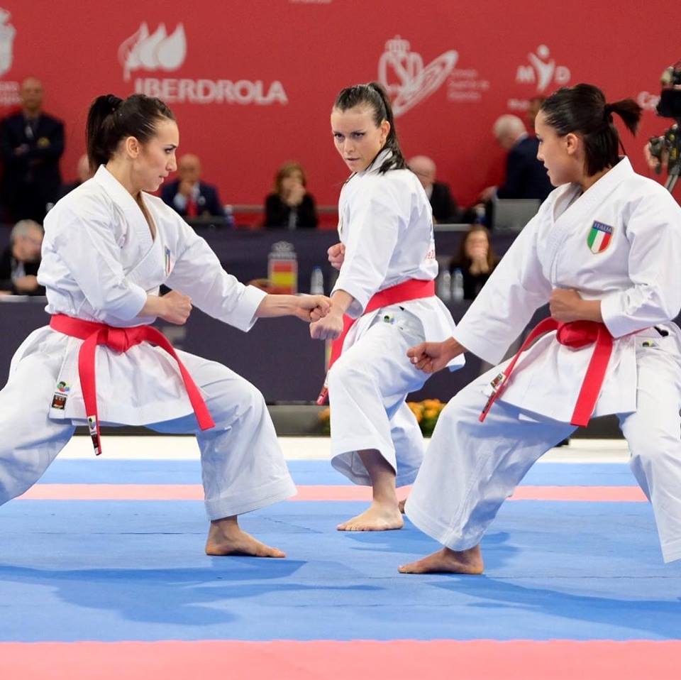 Dopo la conquista ieri del titolo da parte di Luigi Busà (-75 kg), dell’argento di Angelo Crescenzo (-60) e Viviana Bottaro (kata) e dei bronzi di Silvia Semeraro (-68 kg), Mattia Busato (kata) e del team femminile di kumite (Laura Pasqua, Clio Ferracuti, Lorena Busà e Silvia Semeraro), domenica il bottino è aumentato grazie all’argento della squadra femminile di kata , composta da Michela Pezzetti, Terryana D’Onofrio e Carola Casale, e il bronzo di quella maschile di kata formata da Alessandro Iodice, Gianluca Gallo e Giuseppe Panagia.