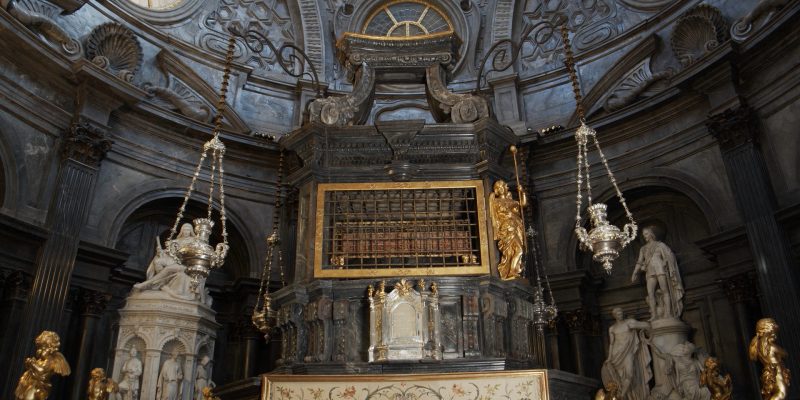 L’altare della Cappella della Sindone, commissionato dal duca di Savoia Vittorio Amedeo II, è stato progettato dall’ingegnere e matematico Antonio Bertola (Muzzano, Biella 1647 – 1719) tra il 1688 e il 1694 per accogliere la Santa Sindone, conservata nell’urna centrale dal 1694 al 1993.