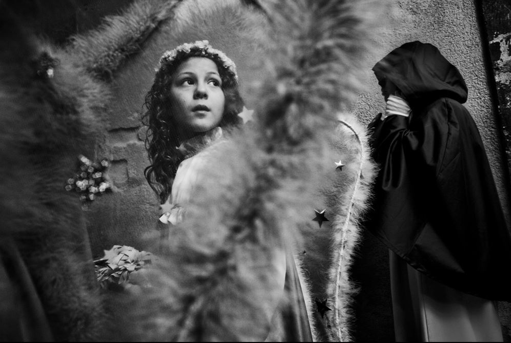 Italia: L’eredità dei misteri. Durante la Settimana Santa, molte città siciliane diventano palcoscenici di malinconiche processioni, a cui partecipano pure bambini, anche nei panni di angeli. Il fotografo italiano Daniele Vita, il cui padre è emigrato dalla povera parte meridionale del paese in una città a nord di Roma quando aveva 15 anni, ha visitato regolarmente la Sicilia per molti anni. Anche per comprendere meglio il padre e la biografia non lineare dei migranti in generale. Vita ha cercato la propria infanzia nei volti dei bambini durante la Settimana Santa. Tracce di una fede solenne, desiderosa di sentirsi protetta nelle tradizioni, e allo stesso tempo un tocco di disperazione, come scrive.
